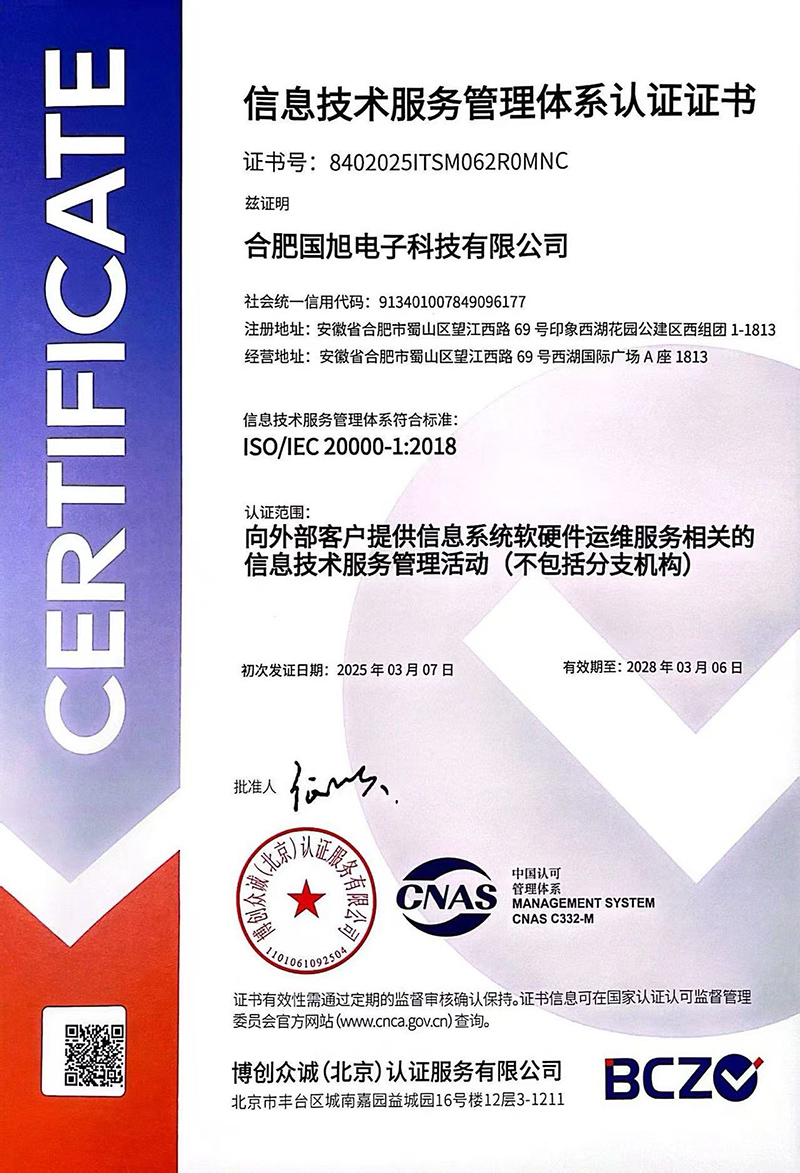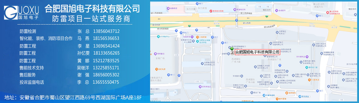 合肥國(guó)旭電子科技有限公司創(chuàng)立于2006年,總注冊(cè)資本2008萬。公司總部地址位于安徽IT主流商圈核心,合肥市蜀山區(qū)望江西路與肥西路交口西湖國(guó)際廣場(chǎng)。 公司是專業(yè)從事智能防雷檢測(cè)系統(tǒng)、智能化工程設(shè)計(jì)與施工工程、防雷設(shè)計(jì)施工工程、數(shù)據(jù)中心機(jī)房、消防工程、網(wǎng)絡(luò)監(jiān)控安全技術(shù)防范工程、及智能變電站安全預(yù)警系統(tǒng)。
